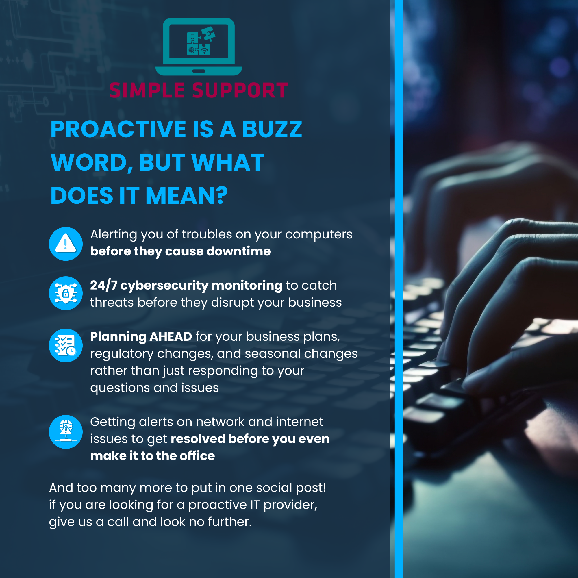 Simple Support proudly works with businesses throughout Troy and Southeast Michigan. Our team understands the local business landscape and provides personalized solutions tailored to your industry and goals.